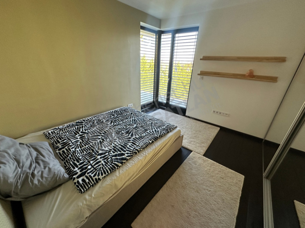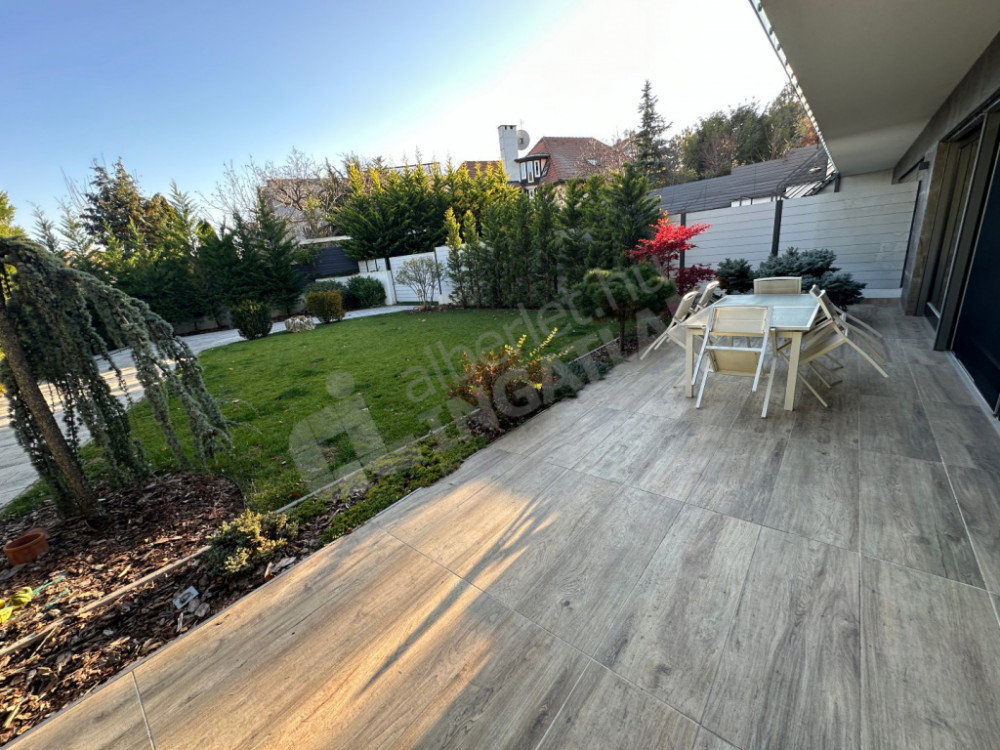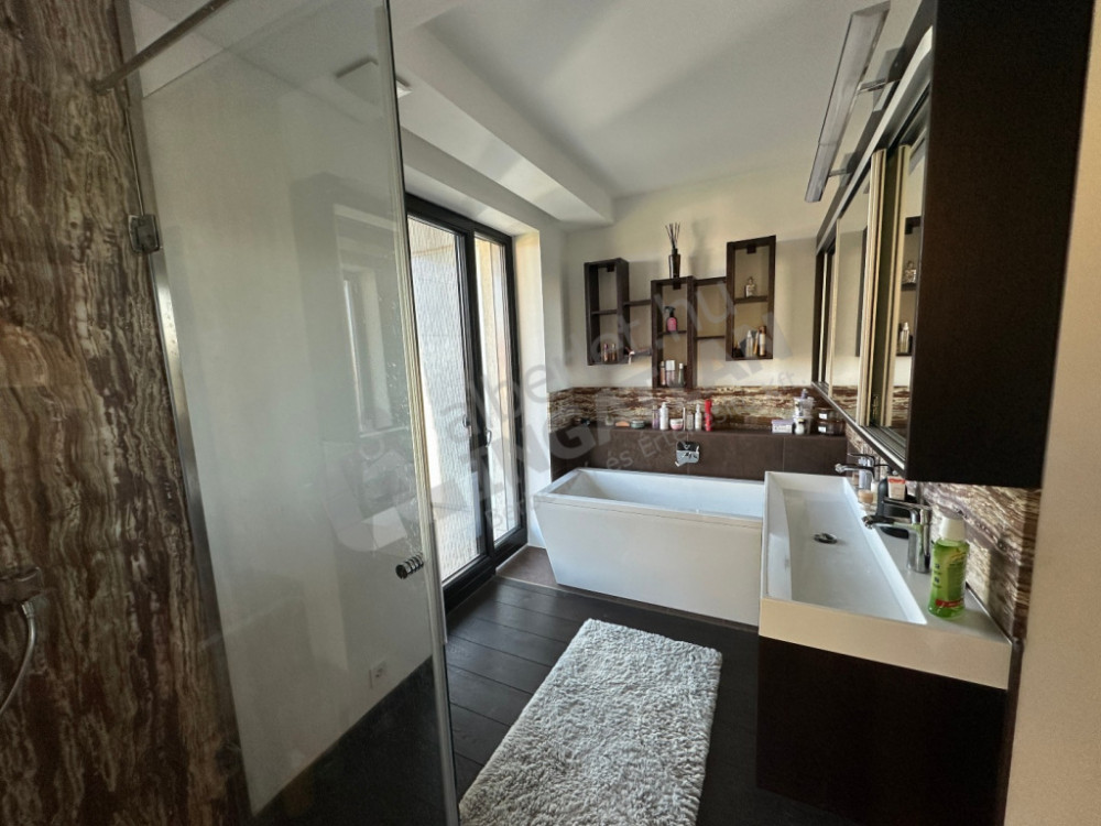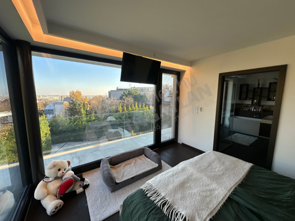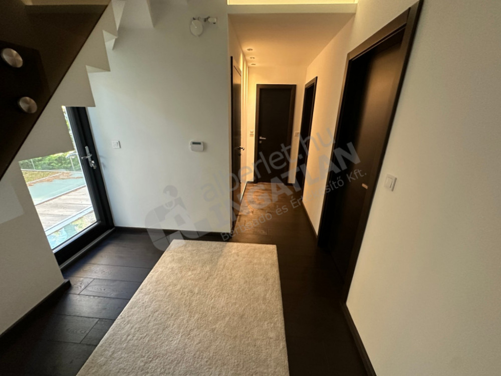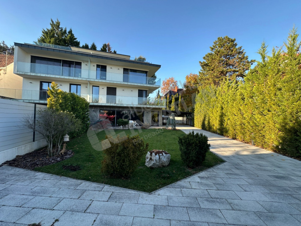 On the upper section of Dayka Gábor Street, a minimal-style, newly built luxury semi-detached house is for rent.