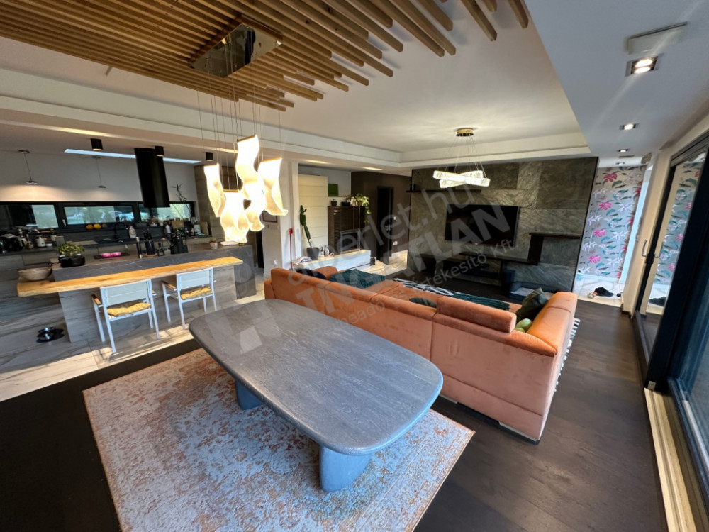 High-quality technical content and coverings, heat pump ceiling cooling and heating, air exchange system, premium category furniture and technical items.