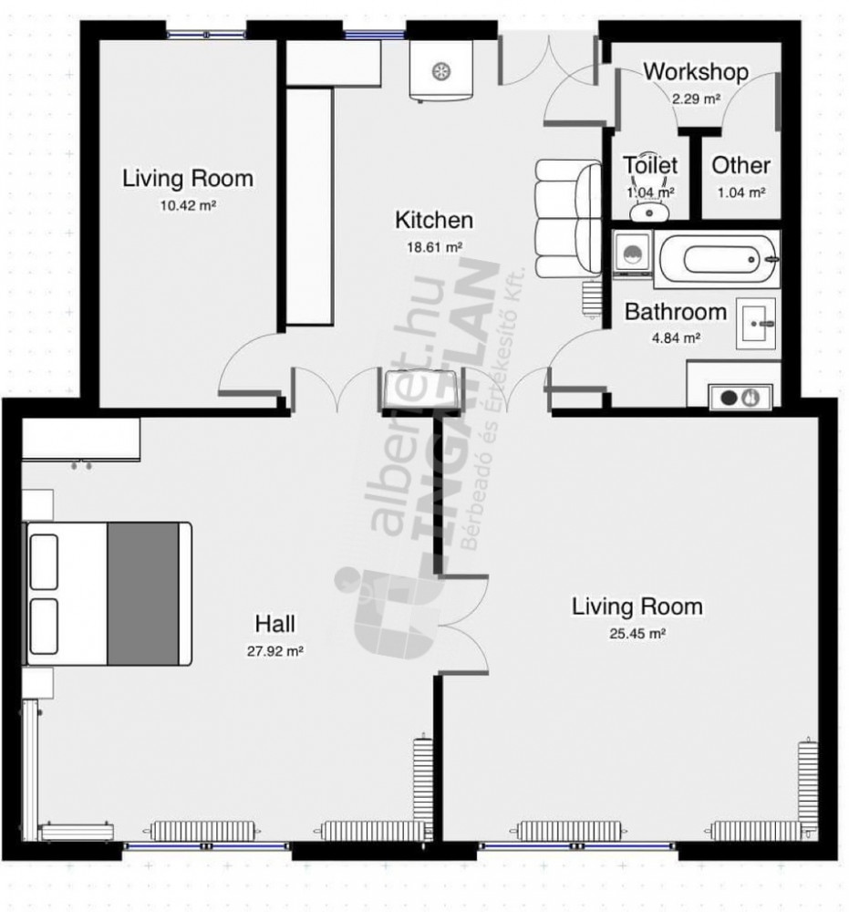 Common cost: 24.400 HUF/month. Utility charges are payable on a meter basis.