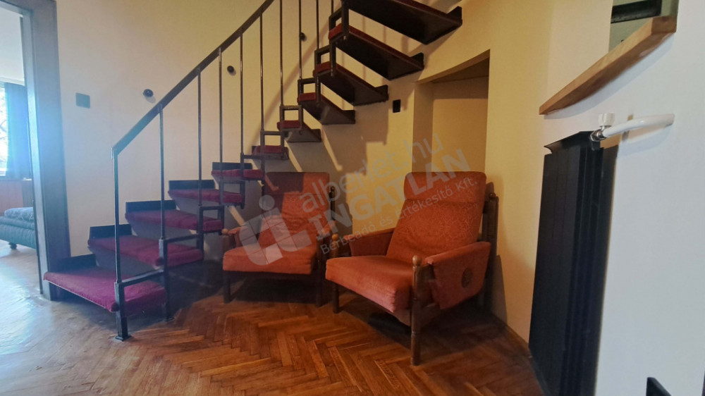 For rent is a partially furnished 3+1 room, interior two-storey apartment overlooking the Tóth Árpád promenade in the Buda Castle