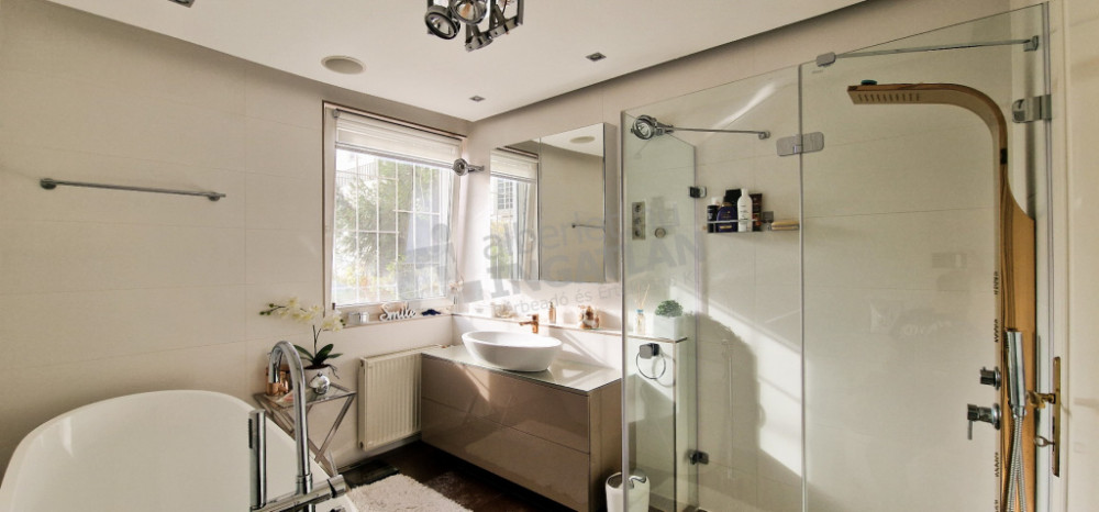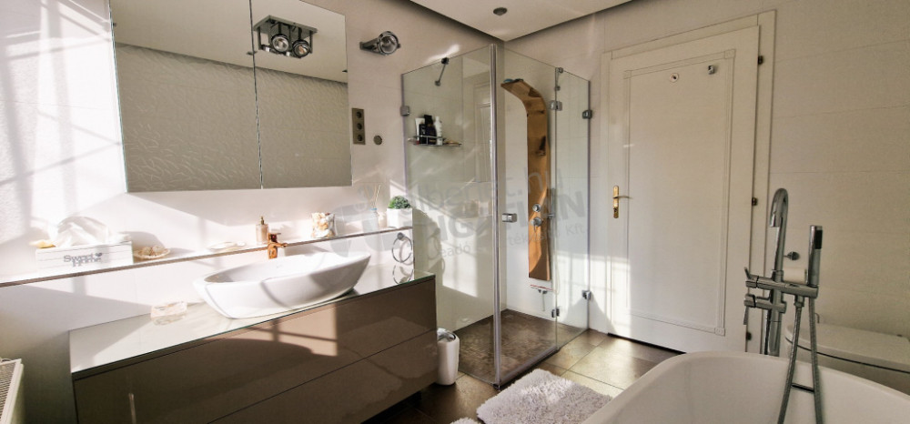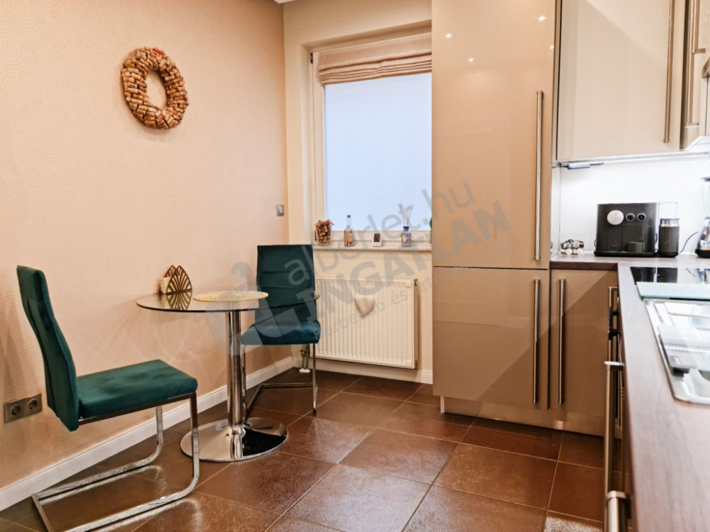 The property has been designed according to the highest quality expectations: Spanish cold tiles, Italian sanitary ware, German warm tiles and British design wallpapers create an exclusive, yet harmonious interior. Individually designed and manufactured built-in furniture provides an elegant look and practical use of space. The hidden mood lighting installed in each room and the professional sound system integrated into the ceiling further enhance the prestige of the property. All rooms of the apartment are air-conditioned, heating is provided by a modern condensing boiler.
