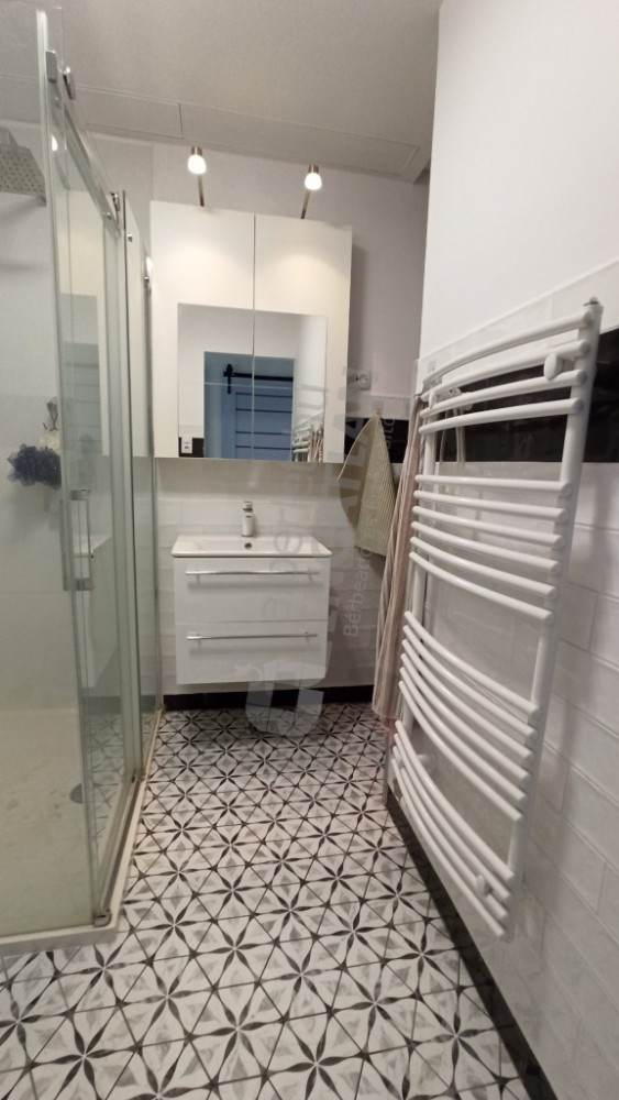 The property is equipped with a living room with an American kitchen, a mechanized kitchen, a bathroom with a shower and a separate toilet. Heating and hot water are provided by a circulator, the apartment is air-conditioned and partly furnished. The interior height is 270 cm, which gives it a spacious, bright feel.