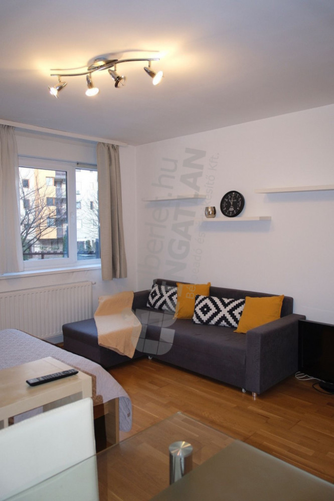 For rent in Óbuda, in the Sun Palace residential park, a novel 35 sqm, 1-room property overlooking the garden!