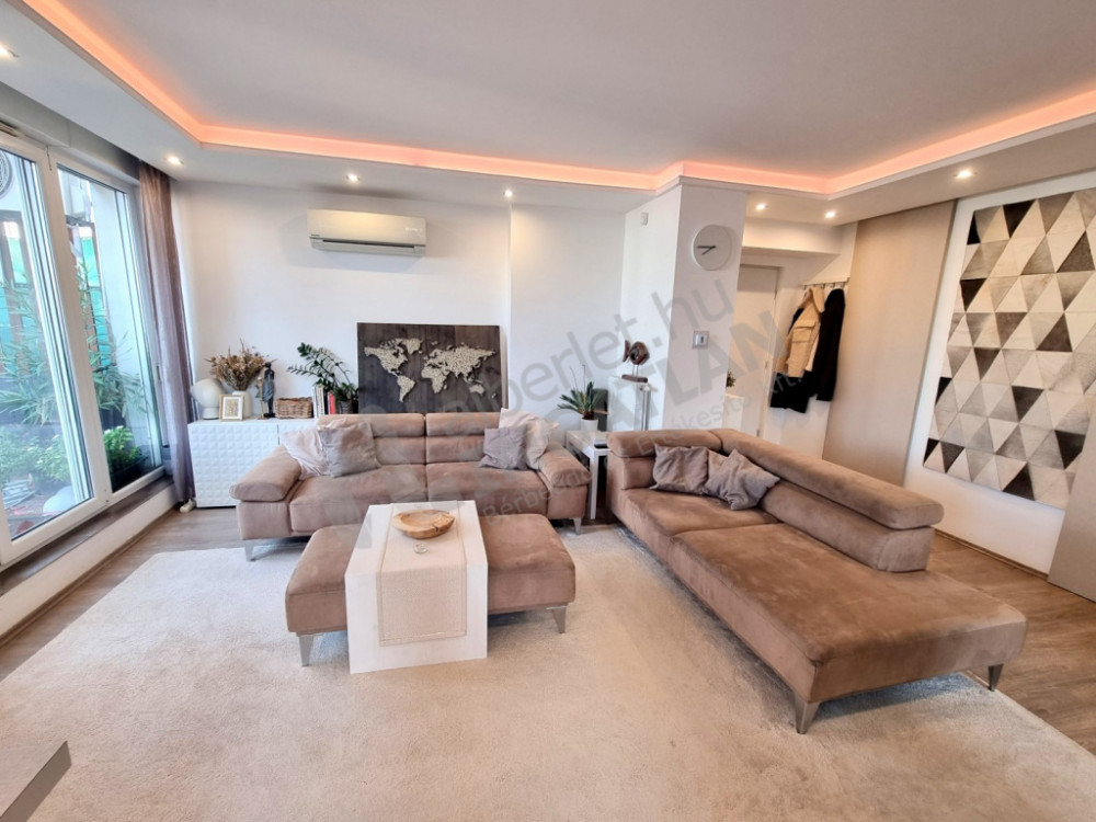 Close to the M3 stop at Nagyvárad Square, on the 5th floor of a NOVEL BUILDING, a 65sqm, LIVING ROOM + 2 BEDROOMS + WARDROBE ROOM, with a large terrace, extremely SUNNY and homely apartment with a view of the Buda hills is for rent.