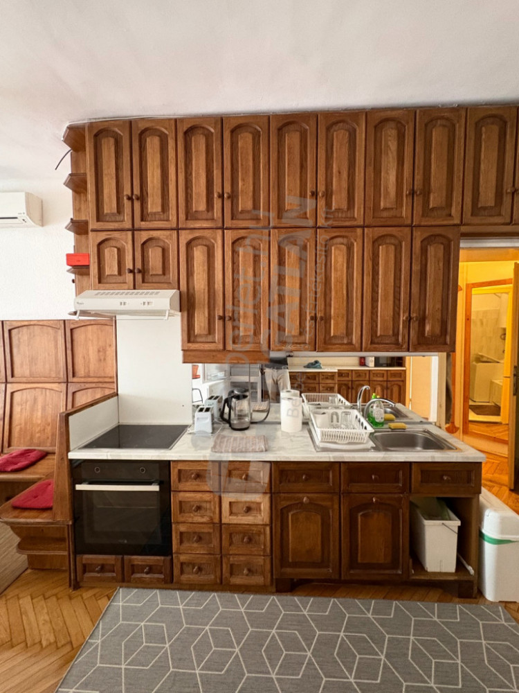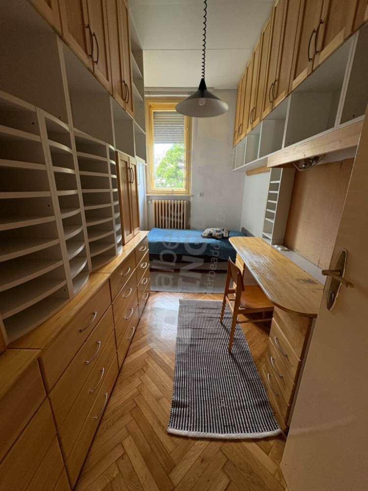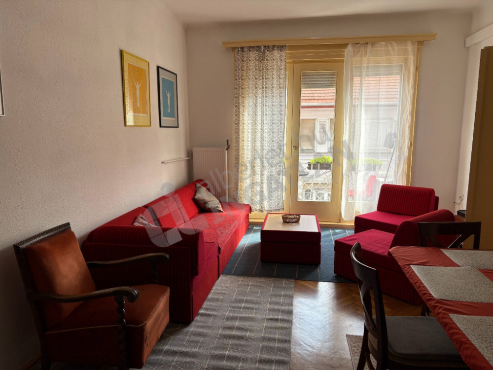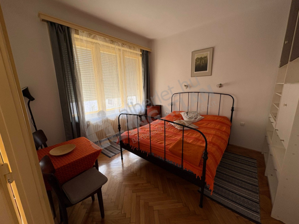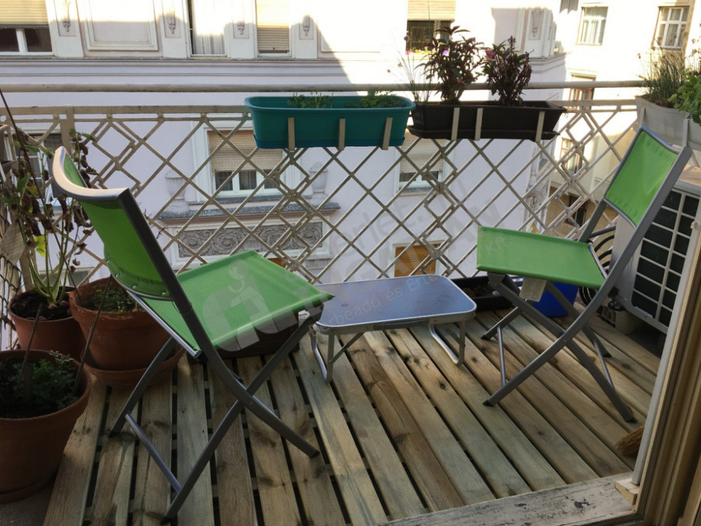 In Ráday Street, a three-bedroom, air-conditioned apartment with a balcony is available for rent.