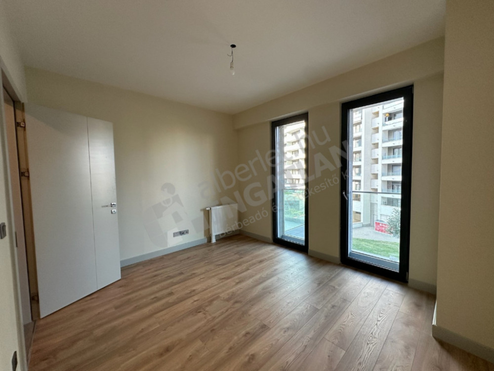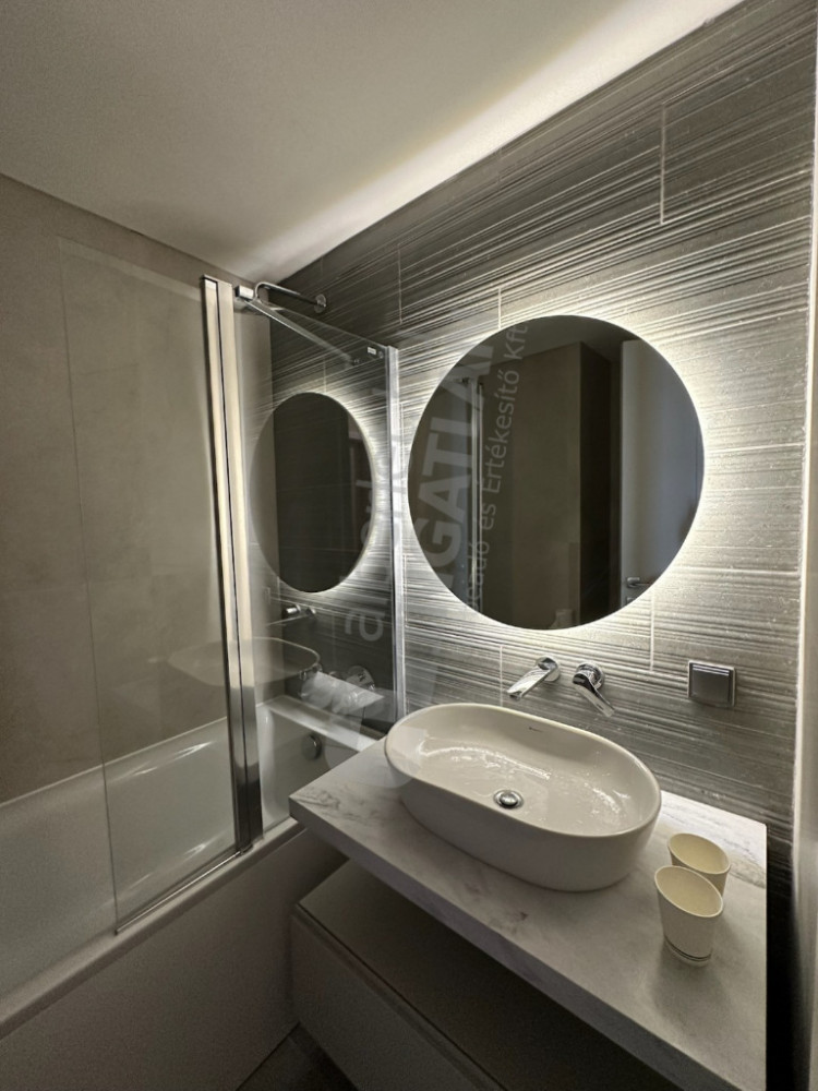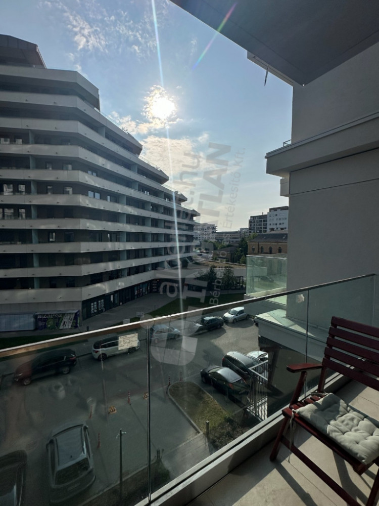 We offer for rent an 86 m², premium-quality, newly built apartment in one of the most dynamically developing parts of Budapest's 9th district, directly opposite the Palace of Arts. The apartment has an excellent layout: a spacious living room with an American kitchen, two separate bedrooms, two bathrooms – one with a bathtub and one with a shower – and a separate laundry room provide comfort. From the living room and one of the bedrooms, we can step out to two separate balconies, which overlook a quiet side street, thus offering a calm, undisturbed environment.