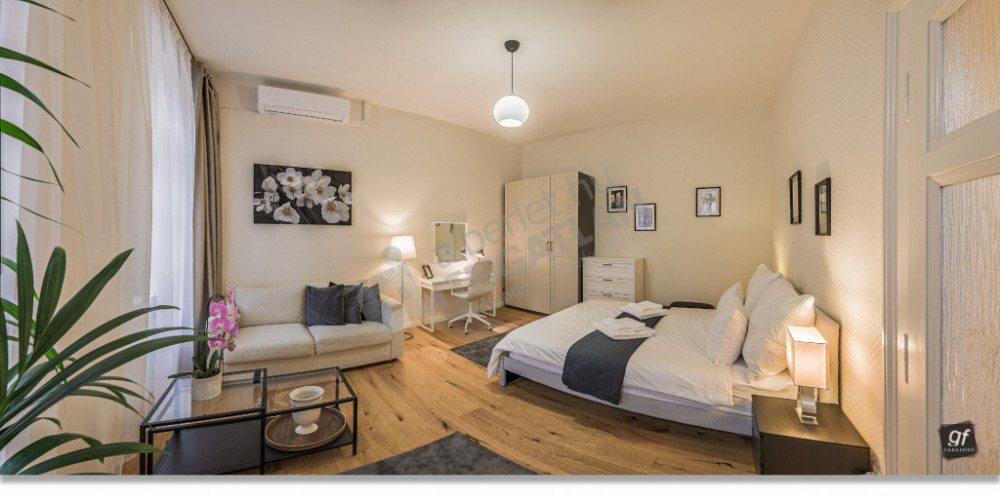 From 15 March 2026, a newly renovated, modern, fully furnished and mechanized apartment can be moved in next to the Arany János Street metro station for the long term.