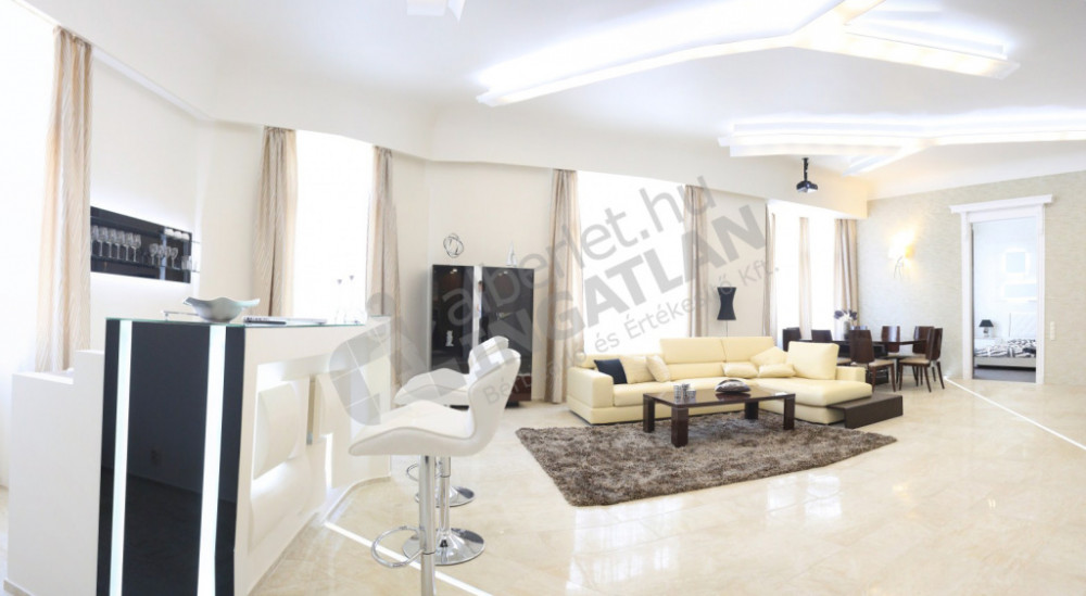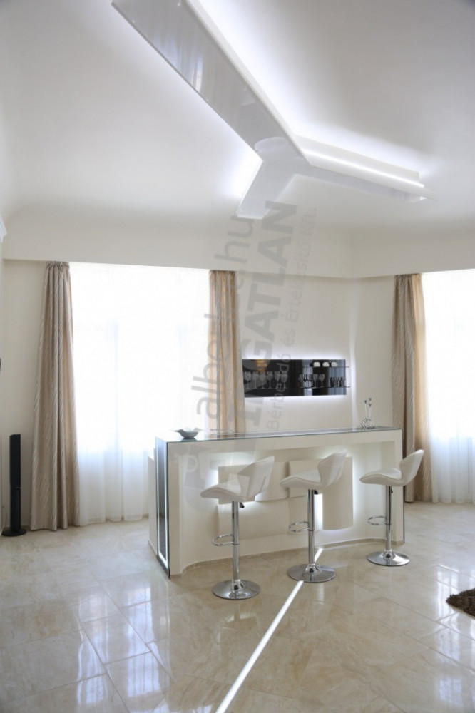 Located in Régiposta Street, this high-floor 170m2 modern luxury apartment with a balcony is located in Régiposta Street. The property is located next to Váci Street, with windows overlooking Szervita Square. It is characterized by a unique atmosphere thanks to the ceiling lights and 3D space sculptures designed here. We tried to build an apartment that was thought out and elaborated in every little detail.