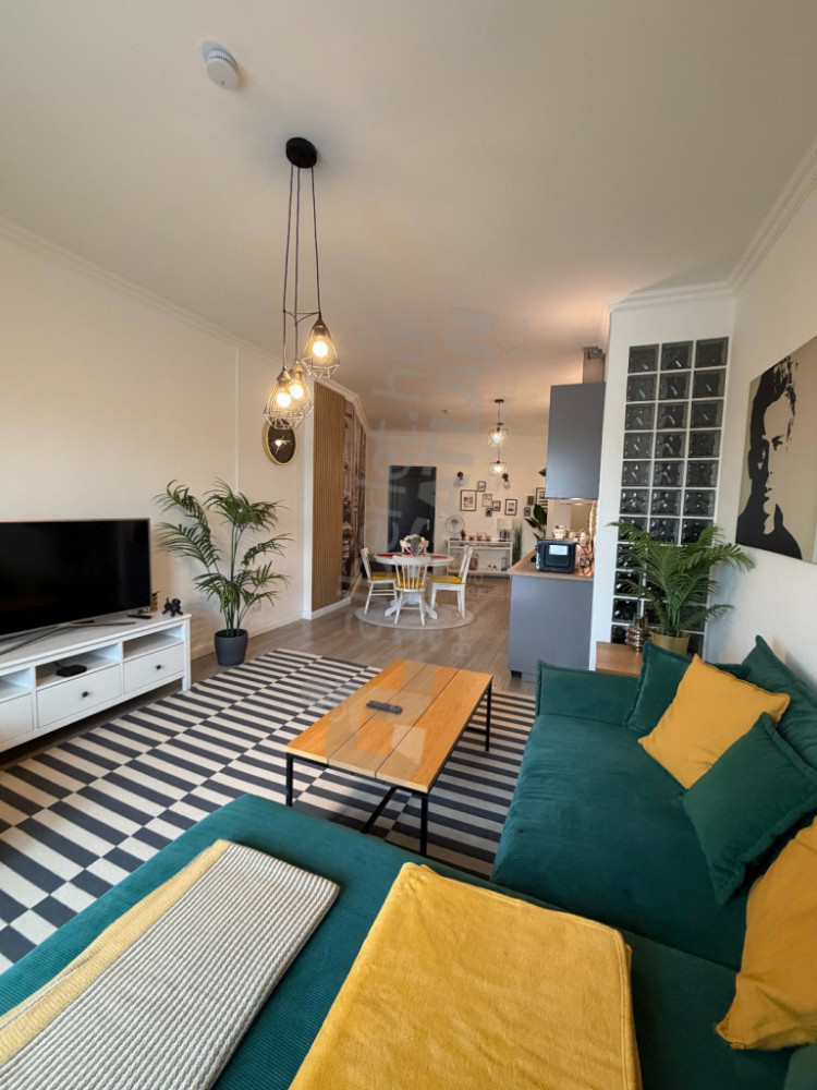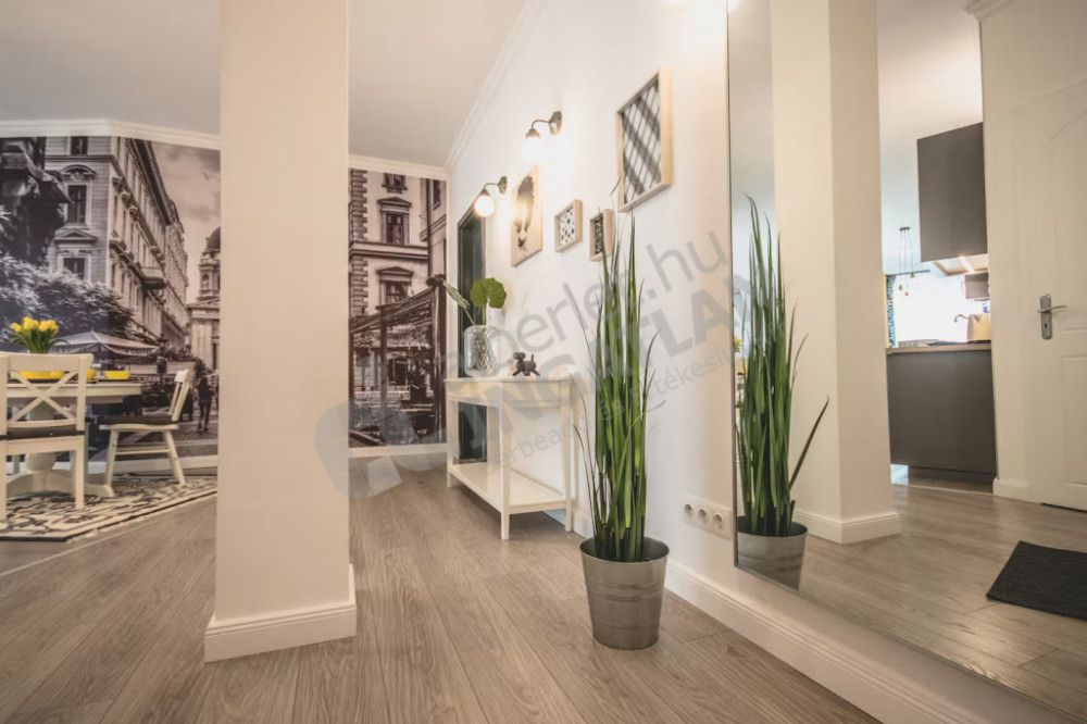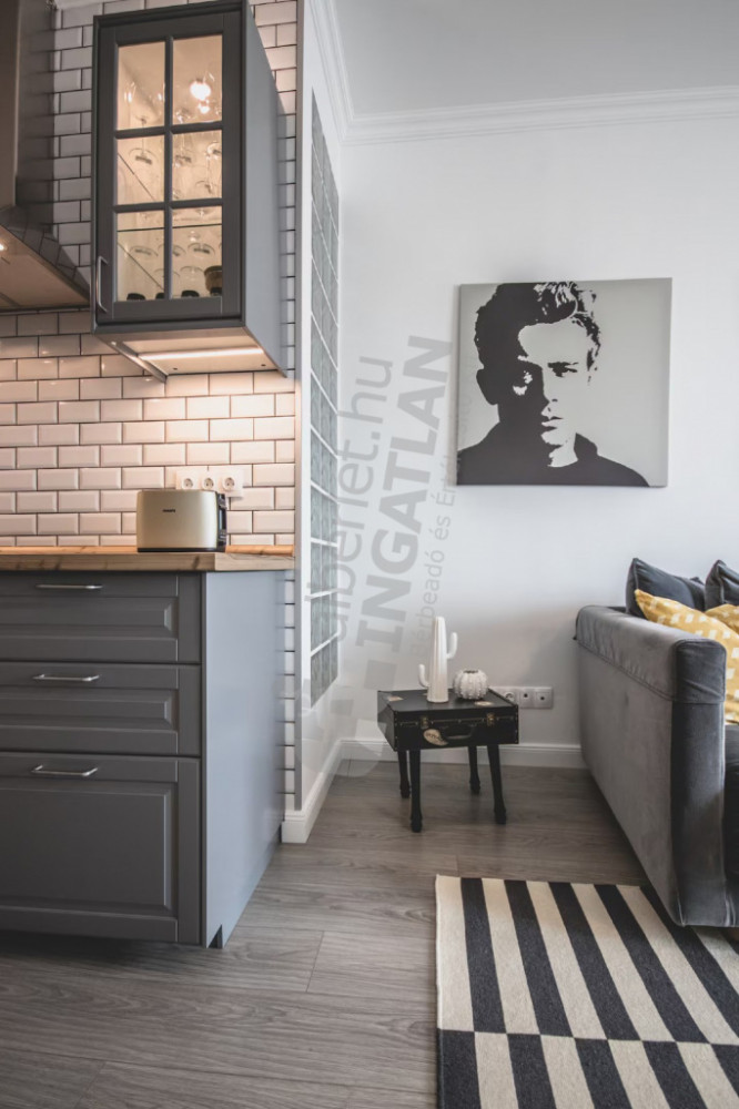 The layout of the apartment is ideal: it has a spacious living room with an American kitchen, two separate bedrooms, a bathroom and a separate guest toilet, an entrance hall, and a cozy balcony that provides a pleasant relaxation area above the city center. The fully mechanized kitchen and air-conditioned design provide a comfortable, comfortable home in all seasons. Thanks to the high floor, the apartment is particularly quiet and sunny, the condominium is tidy and constantly maintained.