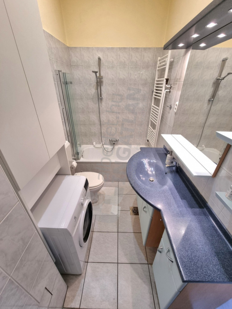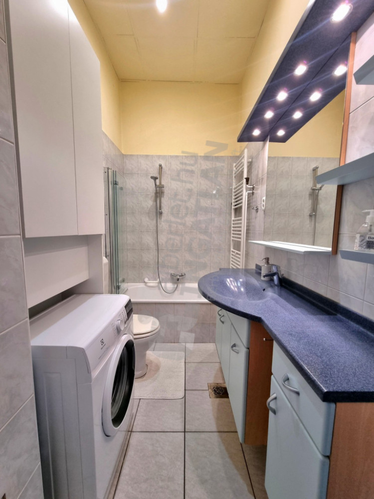 The modern, mechanized American kitchen (hob, oven, extractor hood, fridge, dishwasher) is fully equipped, the apartment is furnished for rent. Heating and hot water are provided by a circulating system, and the feeling of comfort is increased by air conditioning. The bathroom has a bathtub, and there are two toilets in the apartment.
