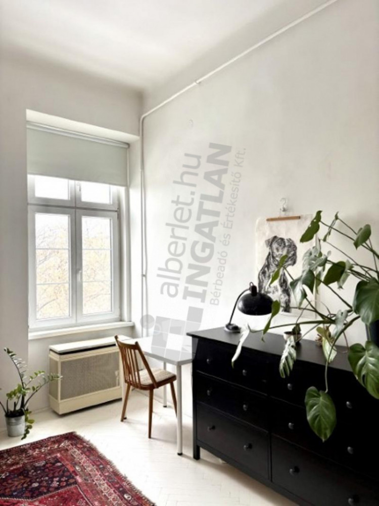 On Hunyadi Square, a nicely furnished, 37m2 studio apartment with a panoramic view of a park is available for rent.