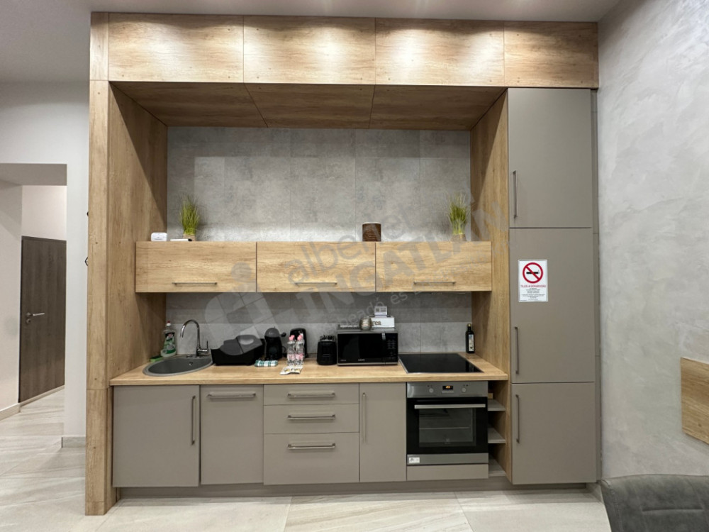 Fully equipped apartment on the first floor, facing the street and courtyard (wardrobes, double beds in the bedrooms, pull-out sofa in the living room, washing machine, fridge, microwave, oven hob, TV, 2 indoor air conditioners, etc.).