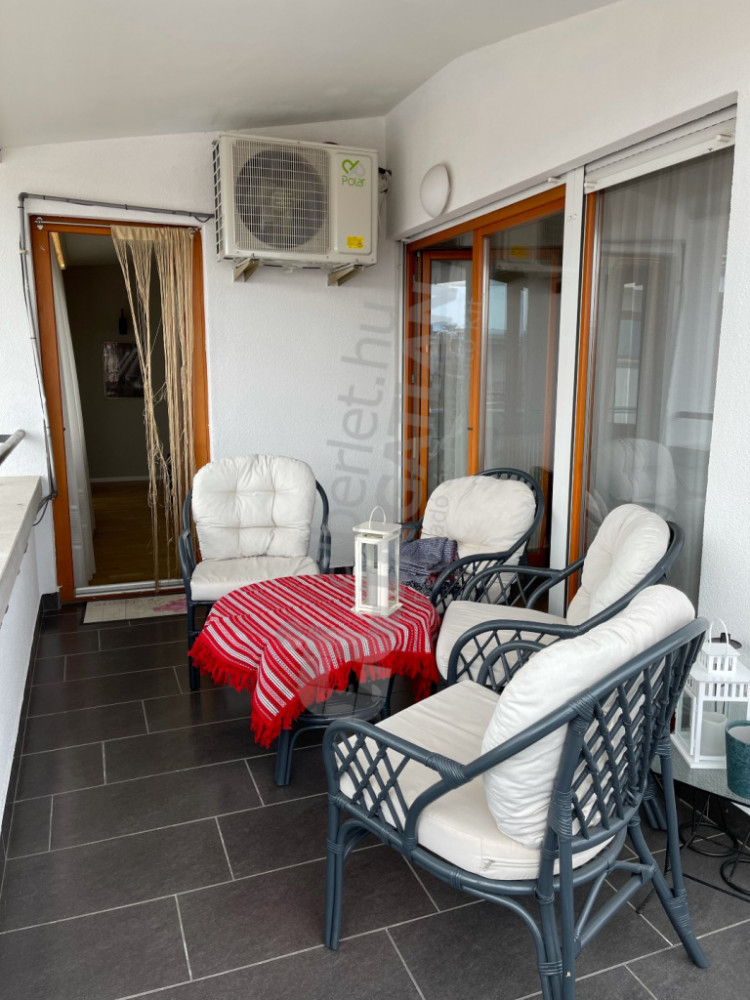 The new, fully renovated, 80 m² property is located on the top floor with a modern design and exceptional features. The apartment has 2 bedrooms, 2 bathrooms (one with bathtub and one with shower) and 2 balconies, which further increase the feeling of comfort. The larger terrace is covered, spacious, furnished with terrace furniture, ideal for relaxing or receiving guests.