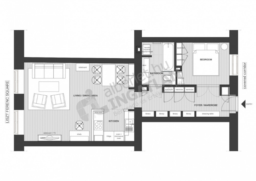 A COMPLETELY RENOVATED, two-room apartment for rent on Liszt Ferenc Square, opening from Andrássy Avenue,