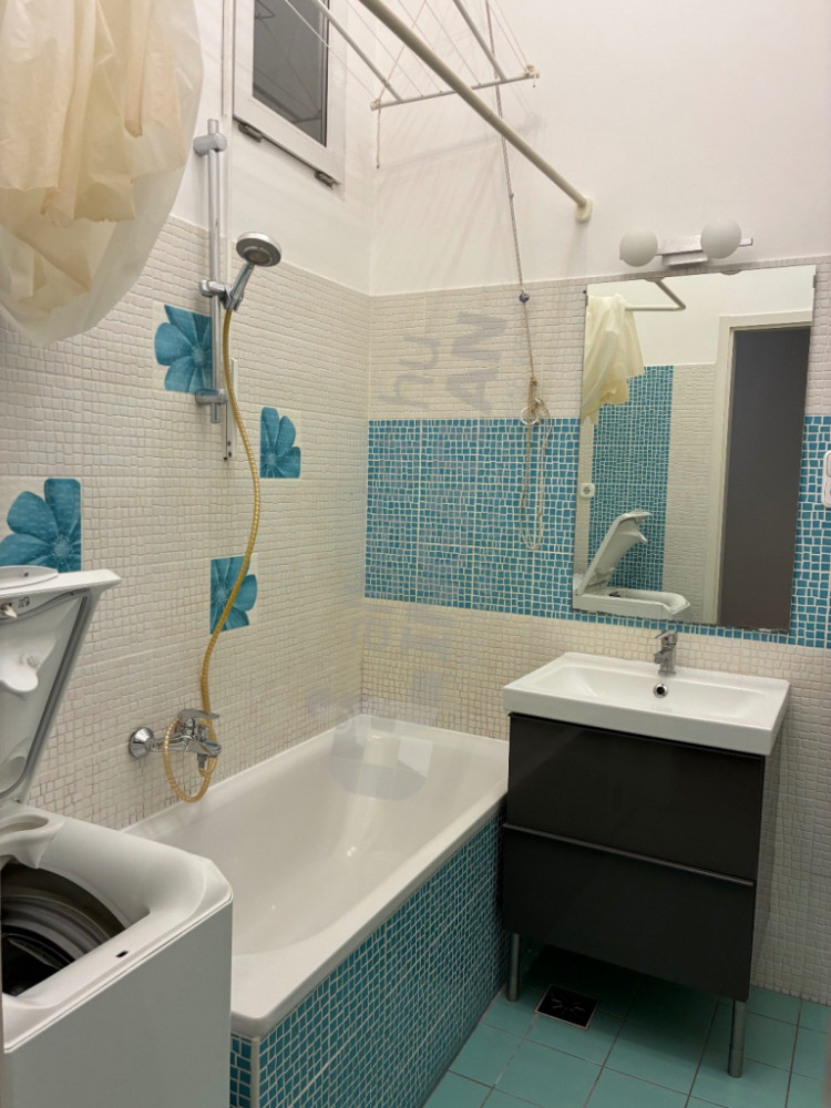 - bathtub/shower bathroom with washing machine, built-in wardrobe, radiator with towel dryer