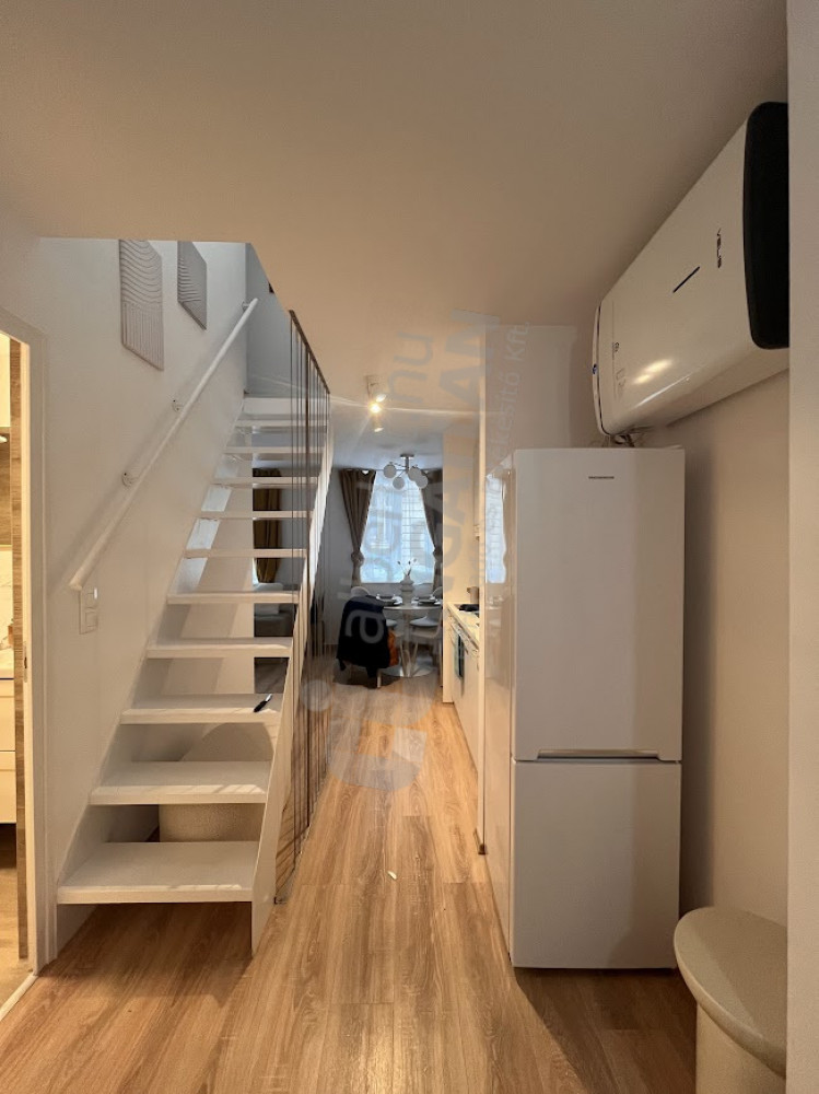 The apartment was separated from a larger apartment. The ceiling height of the original apartment is so high that they practically made a duplex apartment out of the original. It is ideal for students who have been excluded from the dormitory system, for couples who are just starting their careers. Housing is a kind of co-housing opportunity.