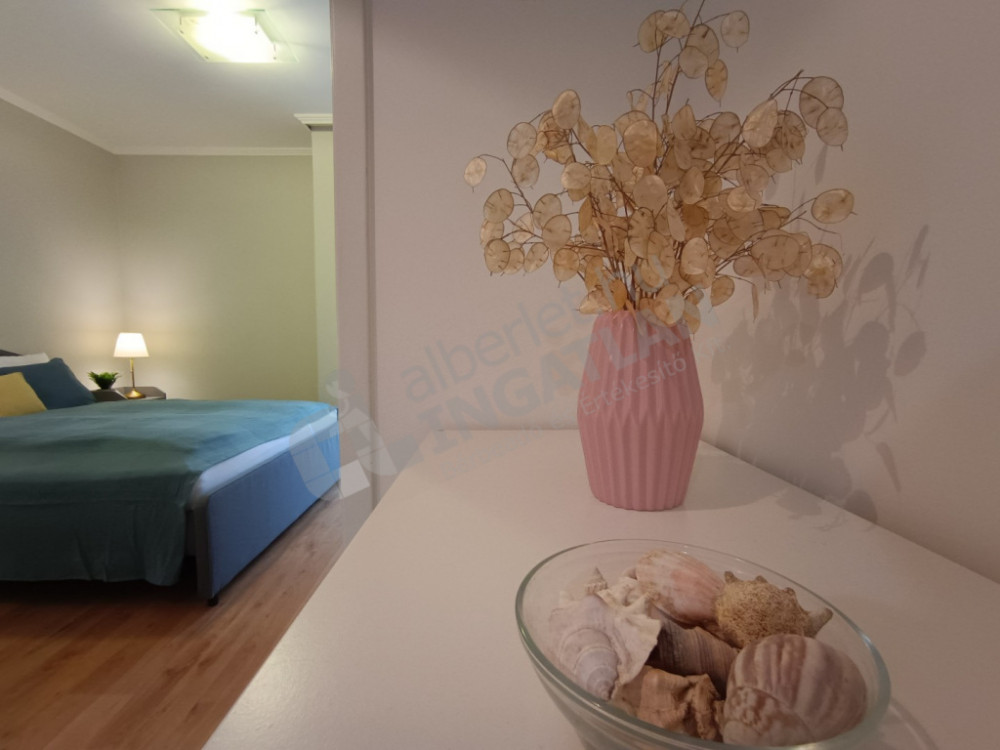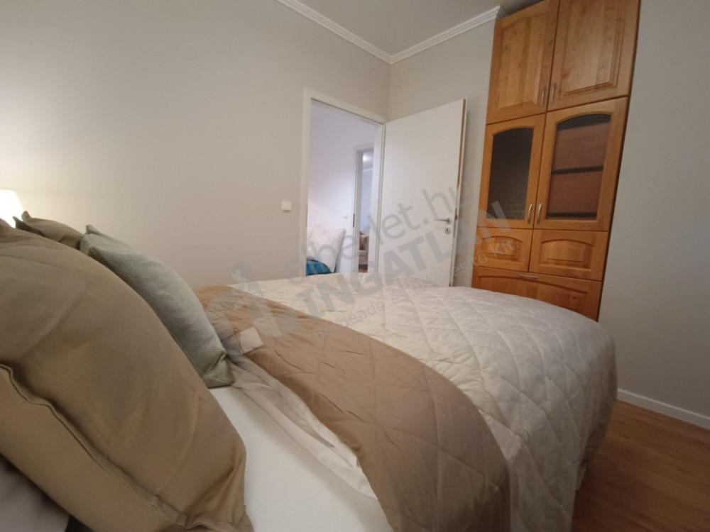 The apartment is fully furnished and mechanized, so it can be moved in immediately. Both bedrooms have comfortable double beds and quality mattresses, while the air-conditioned living room provides cool shelter even on summer days. The bathtub and the separate toilet offer a practical arrangement for everyday life.