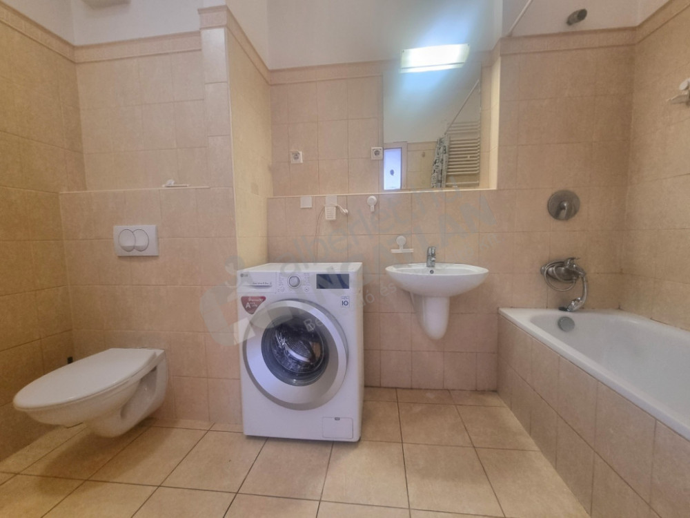 The apartment is partially furnished and mechanized, equipped with a washing machine and air conditioning. Heating and hot water are provided by a central system with a unique meter, which results in predictable overhead costs.