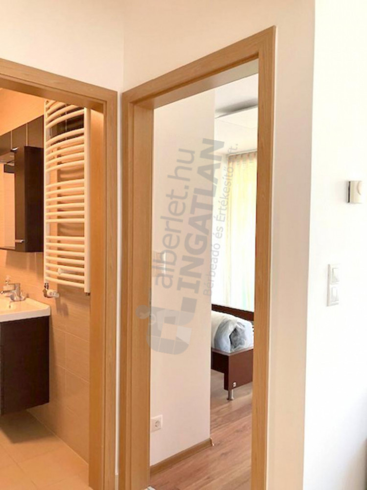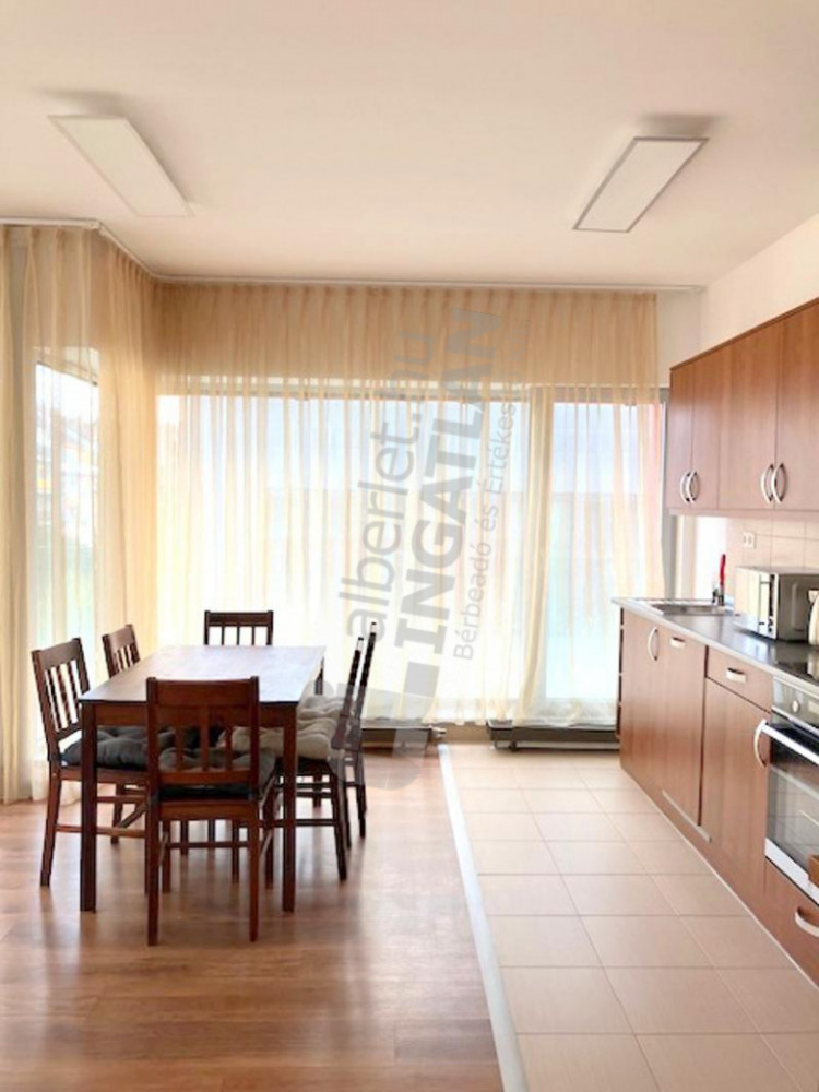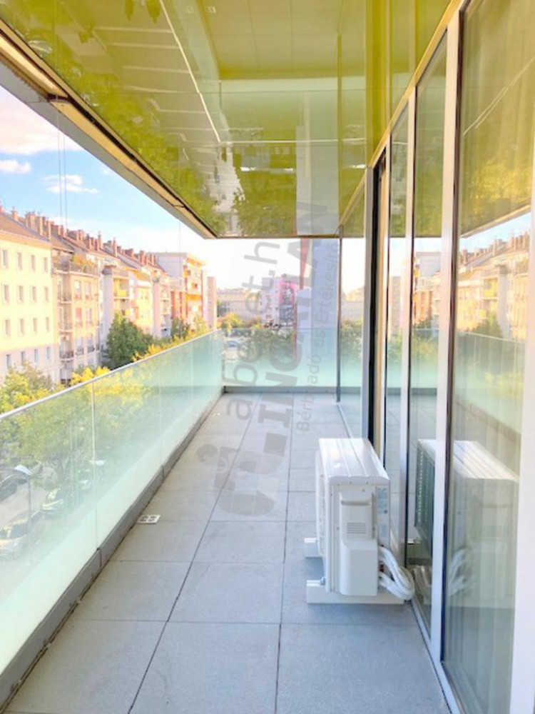 Bright, 4th floor, 53 m² apartment with a 12 m² L-shaped balcony for rent in the modern Simplon Udvar residential park.