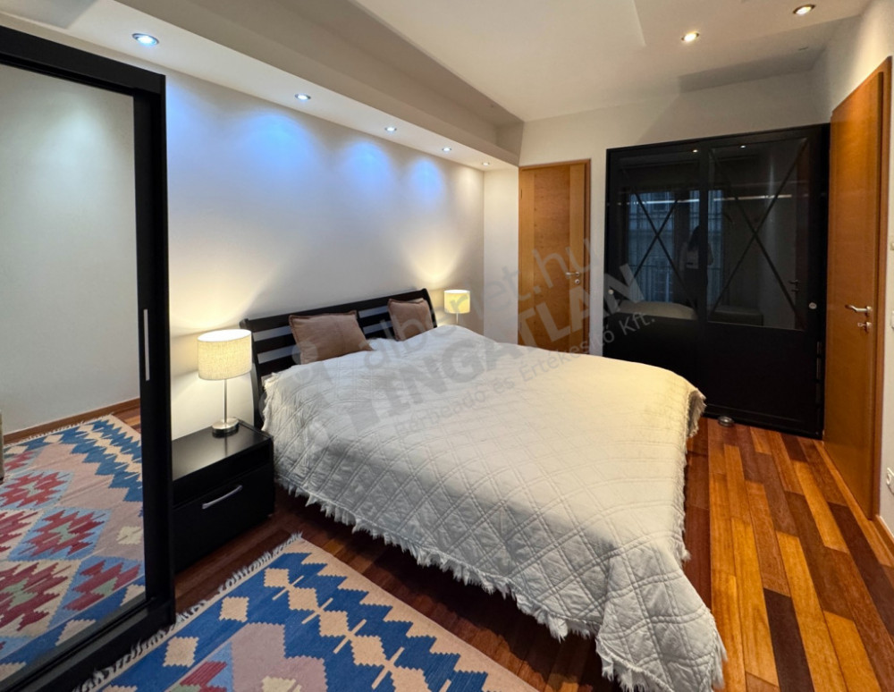 - Tágas hálószoba franciaággyal és nagyméretű gardróbszekrényekkel