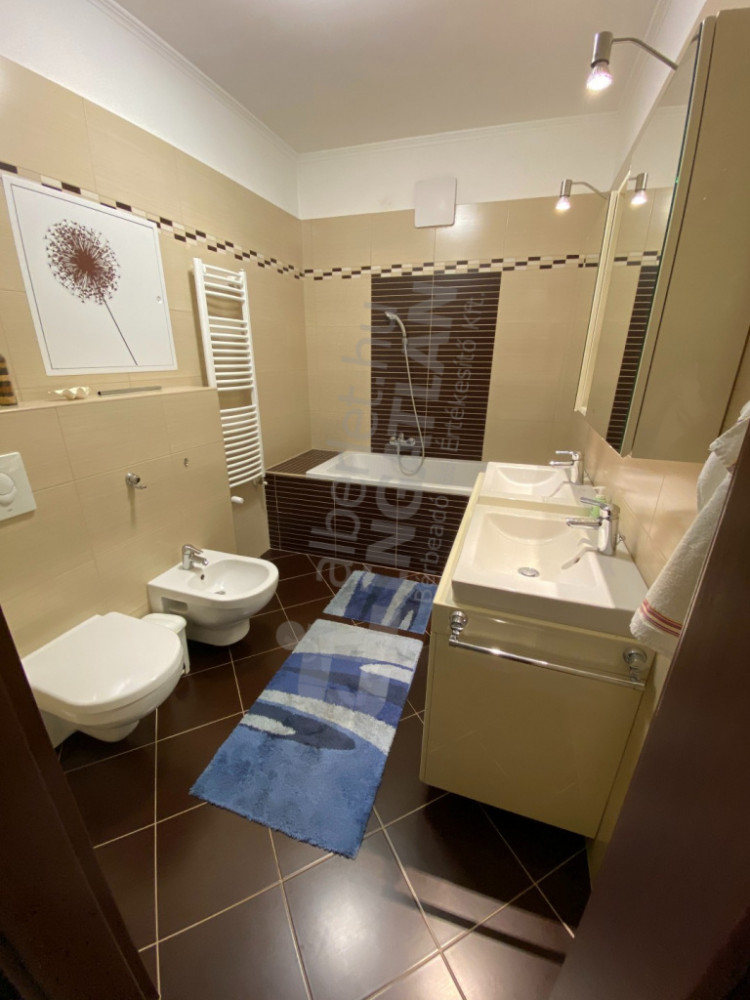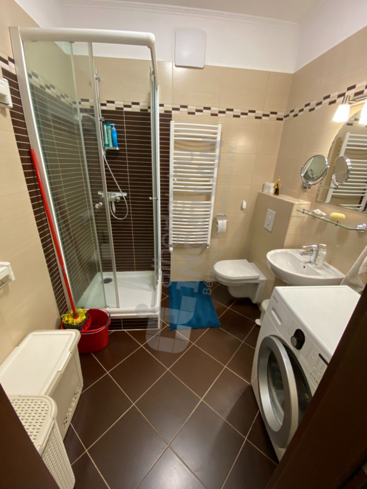 -Teljesen gépesített konyha (indukciós főzőlap, hűtő+fagyasztó, sütő+mikró, mosogatógép),Mosógép Gardróbszekrények Légkondik (nappali + 2 szoba), Riasztórendszer