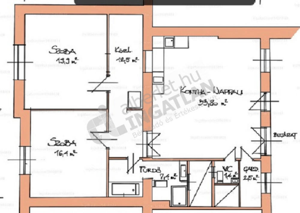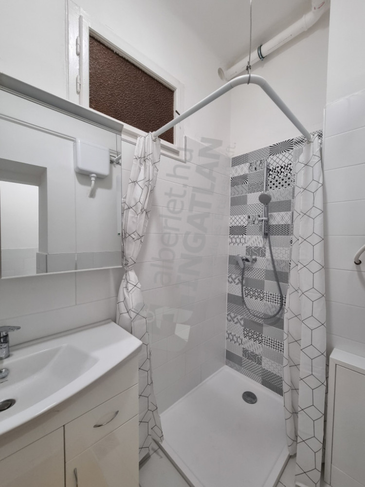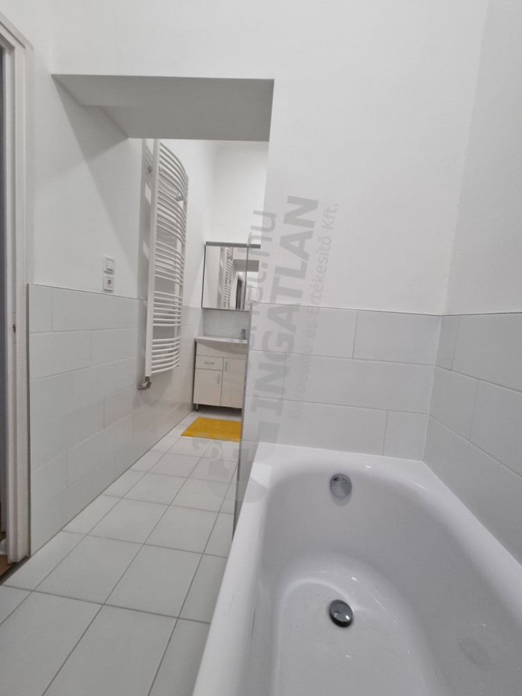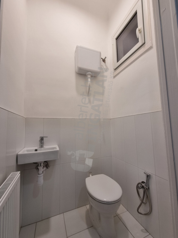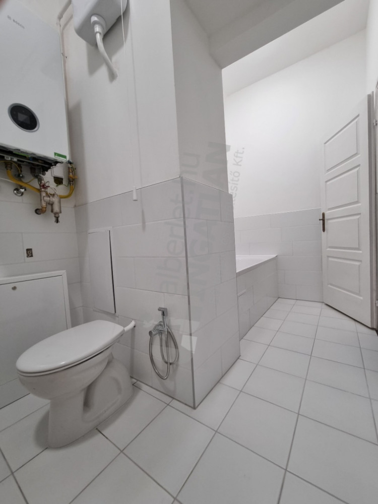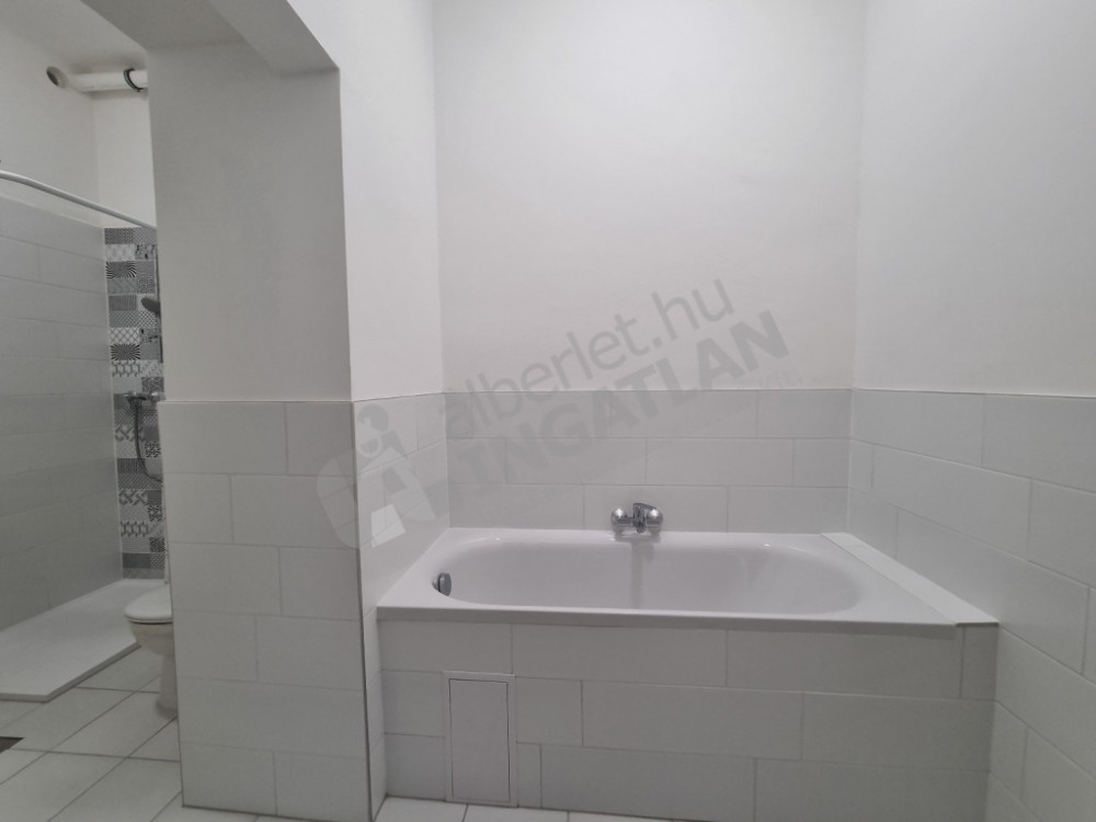 A fürdőszobában zuhanyzó és kád is van, és még egy WC. Utcafrontra nyílik a két nagyméretű szoba.