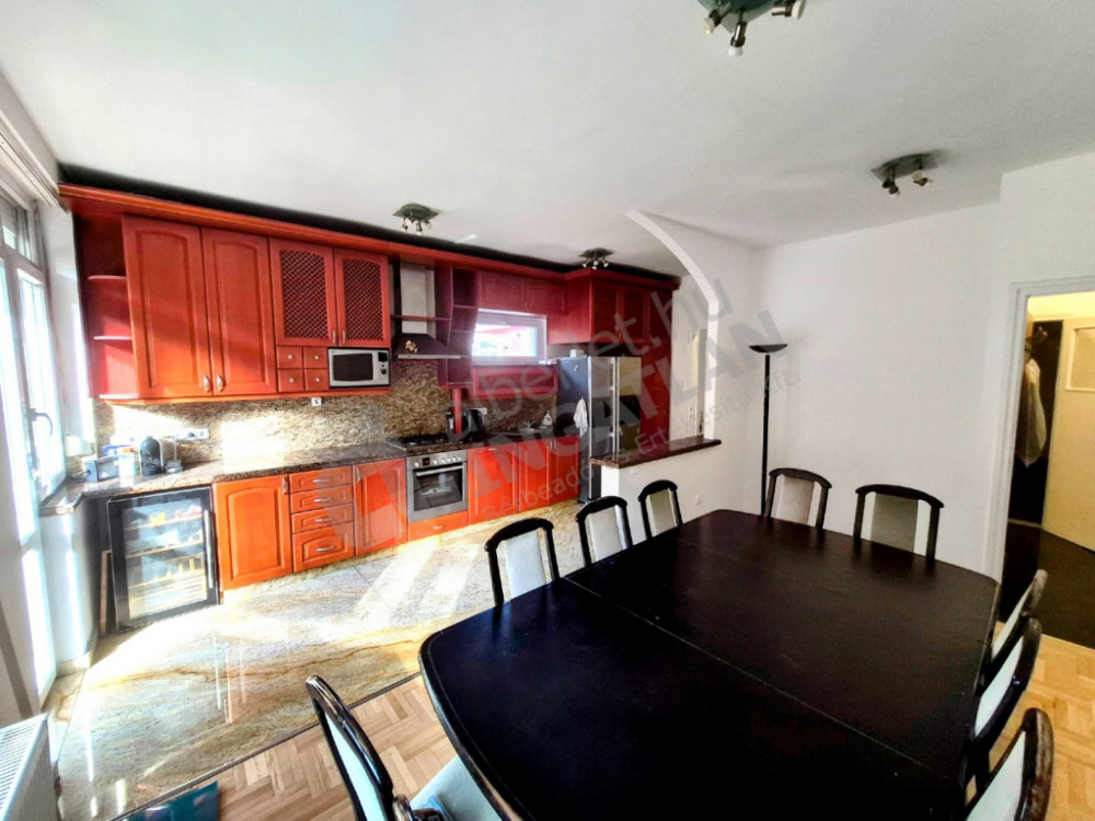 76 m²-es, felújított lakás nagy étkezős, GÉPESÍTETT nagy étkezős konyhával és két külön nyíló szobával.