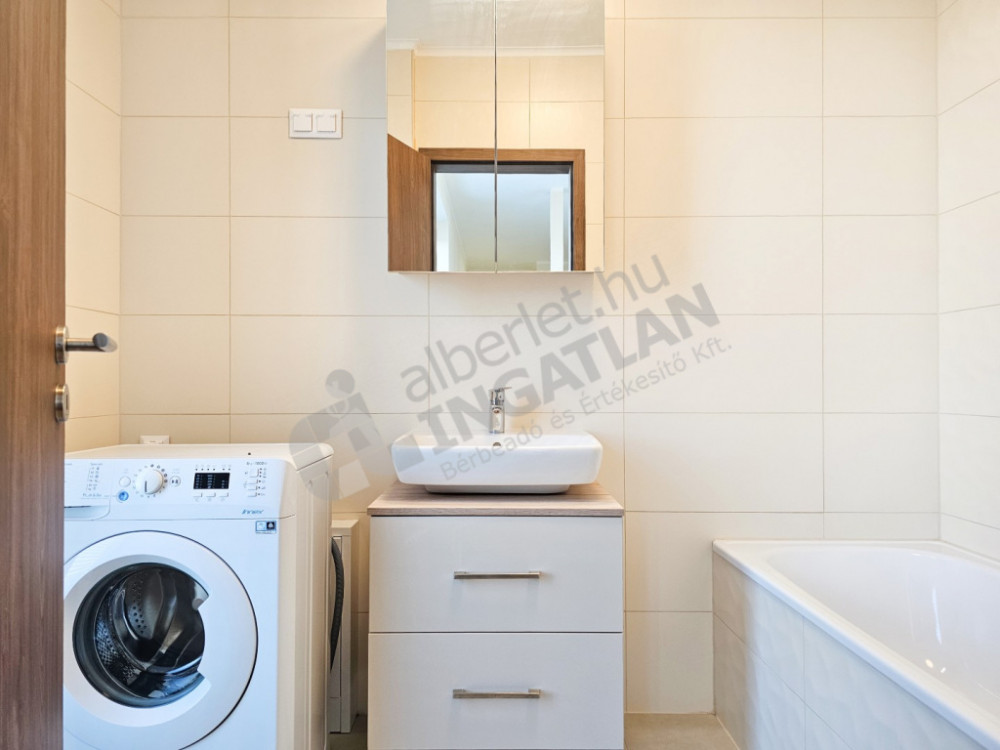 A lakás bútorozott és gépesített. A modern konyha sütővel, főzőlappal, hűtővel, szagelszívóval és mosogatógéppel felszerelt, a mindennapi kényelmet 5 kg-s mosógép és klímaberendezés egészíti ki.