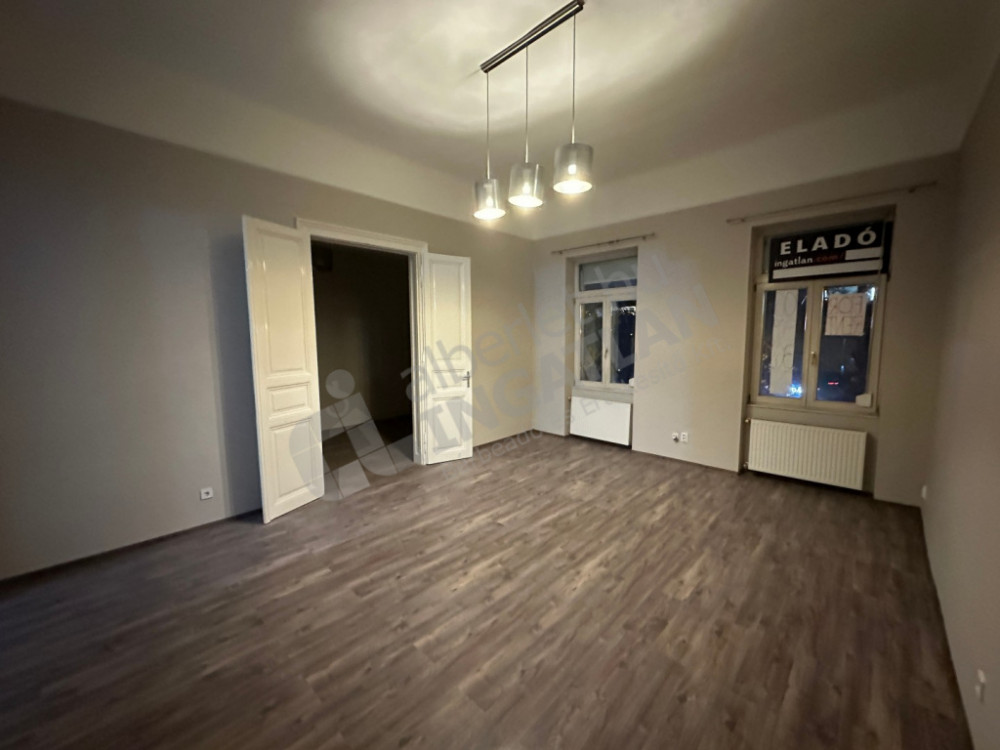2. emeleti, napos, K-i, D-Ny-i tájolású, a két nagyszoba a Nyugati parkolójára néz, a kisebb a csendes belső udvarra. Felújított, külön WC, külön zuhanyzós fürdőszoba, külön konyha, étkező, tágas folyosó.